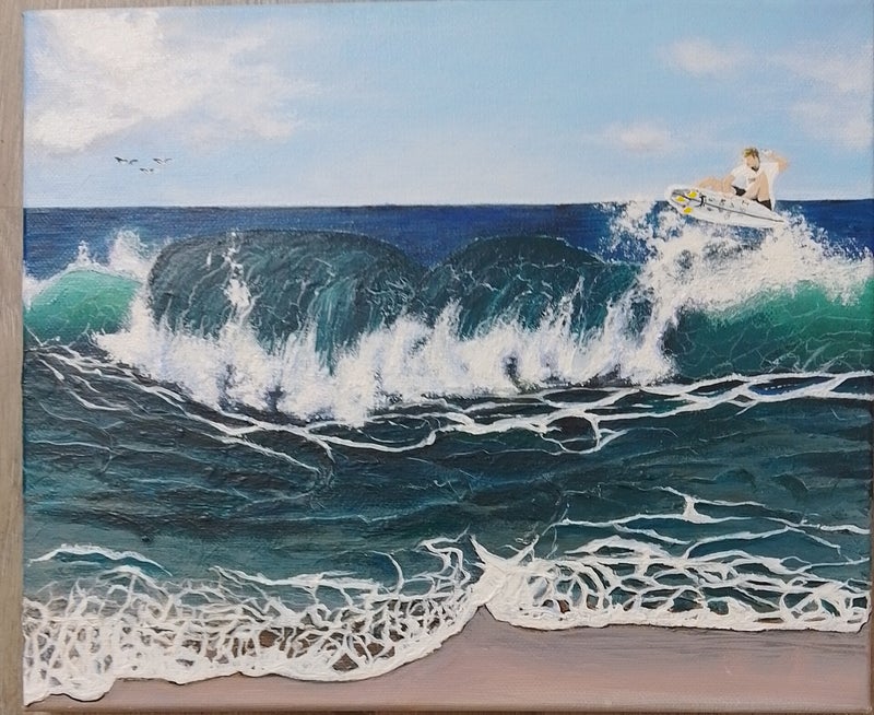 "Surfing my wave", Peinture acrylique sur toile coton, châssis 25*30cm, 2023. Non disponible.