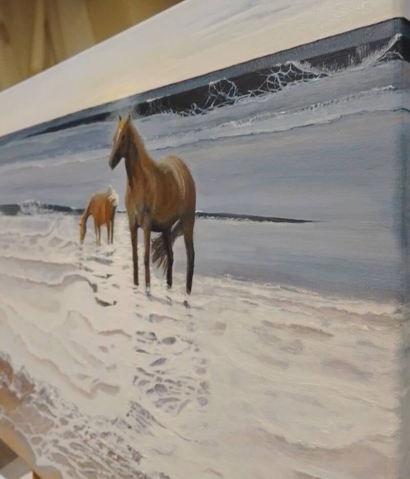 "D Day, plage de Utah, Normandie", Peinture acrylique sur toile coton, châssis 40*50 cm, 2023. Non disponible.