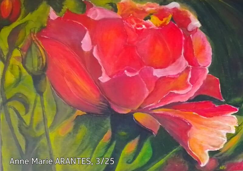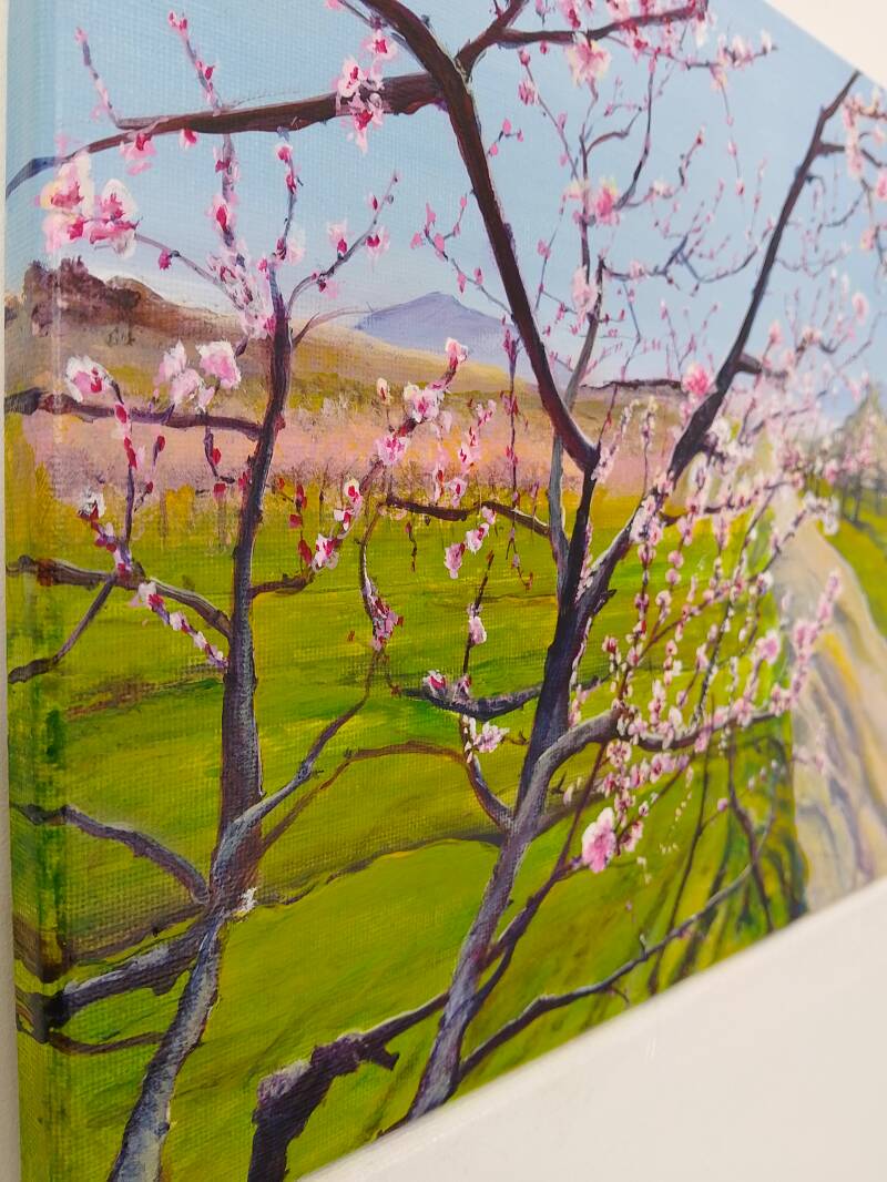 "À la floraison, promesses de bonne récolte !", Peinture acrylique, toile coton sur châssis 24*30 cm, 2024. Les contours de la toile sont peints. Indisponible.