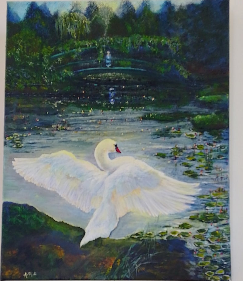 "cygne", Peinture acrylique, toile coton sur châssis 45x55 cm, 10-2025. Les contours de la toile sont peints.
