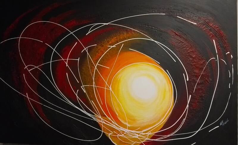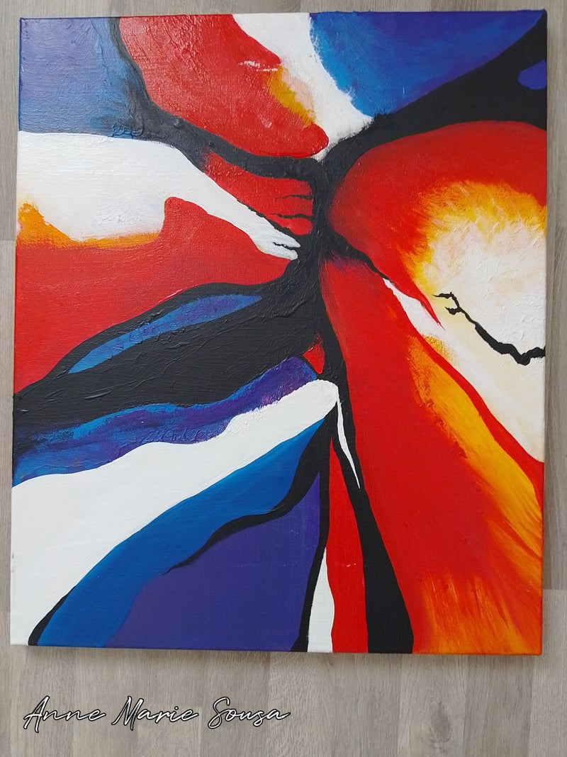 "Explosion dans le volcan", Peinture acrylique, toile de coton sur châssis 50*60 cm, 2023. Indisponible.